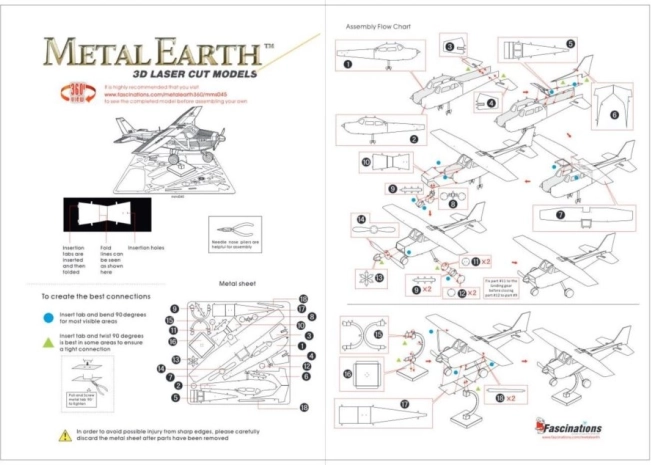 Remove individual parts from the metal sheets; if needed, use small snips (not included). The parts connect using tabs and slots. Bend the tab using small needle-nose pliers (not included) and gradually secure all connections to form a highly realistic masterpiece!