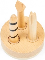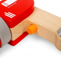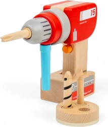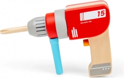 This wooden drill closely imitates a real tool, but without electricity or sharp parts. Children can manually rotate the drill head, switch imaginary modes using the clicky button, and easily attach magnetic drill bits and screws. Ideal for pretend play building shelves or furniture and developing practical skills.