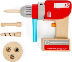 The BIGJIGS TOYS wooden drill is a safe and realistic toy for little builders. It offers manual rotation, magnetic drill bits and screws, and a clicky on/off button. It supports fine motor skills, creativity, and hand–eye coordination thanks to its attractive design and quality craftsmanship from responsibly sourced wood.