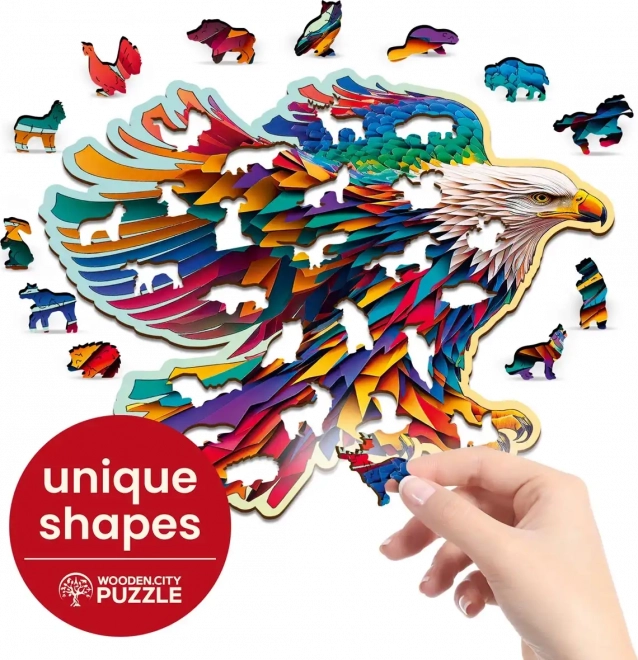 Discover the charm of assembling the Clever Eagle wooden puzzle from WOODEN CITY. This product will captivate you with its specially shaped pieces forming an unforgettable mosaic of animal shapes. Laser-highlighted details and independently standing figures bring new challenges and joy to your assembling experience.