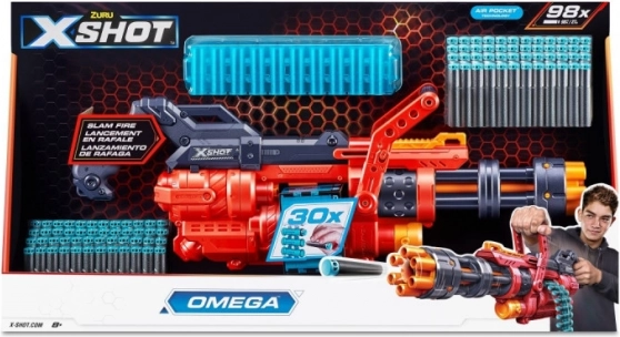 Meet the Omega Blaster by Zuru X-Shot and experience action-packed fun on a whole new level! With the Slam-Fire mode, you can fire up to 4 darts per second.