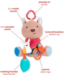 The Bandana Buddies Kangaroo is an engaging multi-sensory toy designed to delight and entertain your baby. This soft activity toy and teether in one features rattles, crinkling sounds, and many other elements to explore.