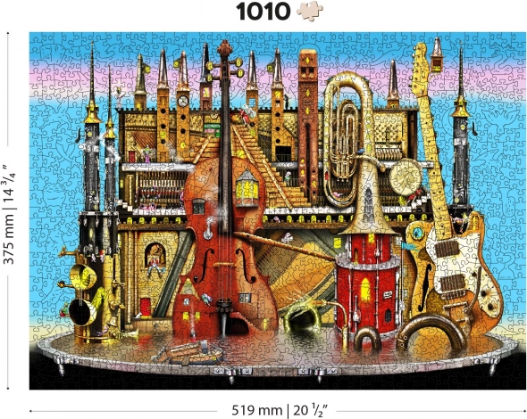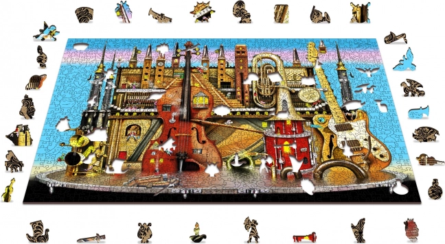 This premium wooden puzzle features an original musical city theme with instruments and towers that adults and curious kids will love. The pieces are laser-cut from sturdy HDF board (3–4 mm), with smooth, splinter-free edges, and some are special shapes of animals, buildings, and objects. They make assembling more challenging, yet incredibly fun and visually striking.