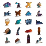 - Uniquely shaped pieces depicting famous buildings, objects, or animals according to the theme