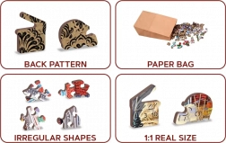 The double-sided 2-in-1 design offers two challenges in one: the front with an illustration for classic assembly, and the back with a patterned texture for shape-guided puzzling. A quality HDF board 3–4 mm thick provides strength, smooth splinter-free edges, and long-lasting durability. A separate reference sheet is included inside for more convenient assembly.