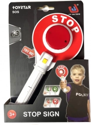 The police stop paddle with light is an ideal addition to the gear of young police fans. The realistic flashing red light makes play more attractive and helps children get into character. The durable plastic build is lightweight, safe, and easy to hold even for smaller hands.