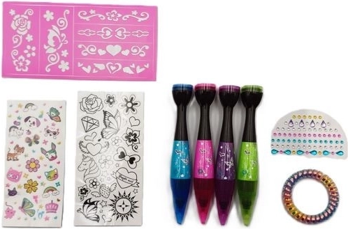 Tattoo Studio pen set with stamps. Create temporary tattoos using stamps and stencils. Ideal for parties, festivals, and kids’ celebrations.