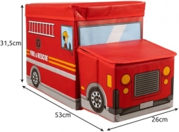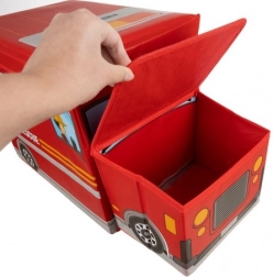 Turn tidying into a play mission with this toy box in a Fire & Rescue look. With dimensions of 53 × 26 × 31.5 cm, it holds plush toys, blocks, cars, and craft supplies. The lid safely hides kids’ treasures and helps keep the room perfectly tidy.