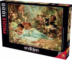 Assemble the beautiful image of a Pink Pavilion with this 1000 piece puzzle by PERRE - ANATOLIAN. The package includes a stand for placing the box lid as a practical reference for assembling.