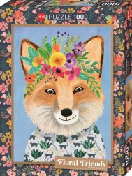 Enjoy a relaxing time assembling a stylish puzzle featuring a fox from the Floral Friends collection by HEYE. High-quality print, precise cuts, and 1000 pieces offer a pleasant challenge and a perfect decoration once completed.