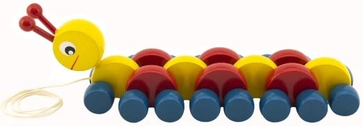 Wooden Pull-along Caterpillar with a length of 27 cm is the perfect toy for small children. Quality wood ensures long-lasting durability.