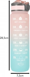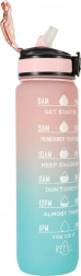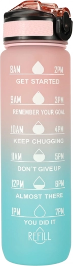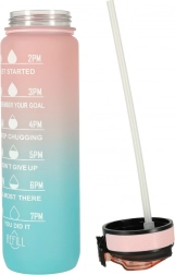 Tritan Water Bottle 1 L with Straw and Motivational Time Markers – Pink–Blue