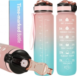 Stylish 1 L Tritan bottle with a pink–blue gradient helps you stay hydrated thanks to motivational time markers. It features a flip-top lid with lock, an integrated straw for comfortable sipping without tilting, and a lightweight, durable, BPA-free material.