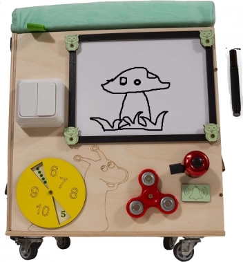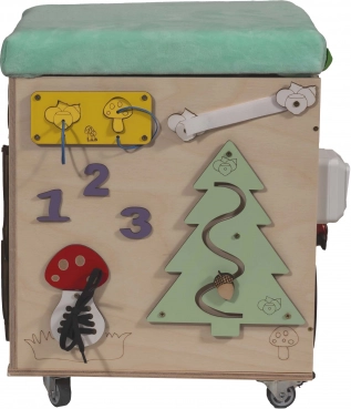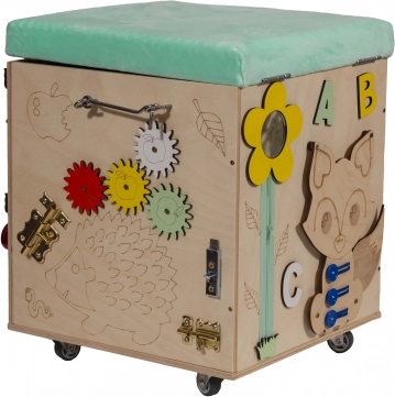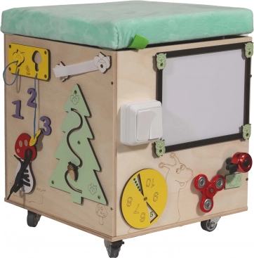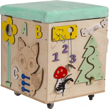 Material: wood, fabric, plastic and metal partsCube dimensions: 31 cm x 31 cm x 40.5 cmPackage dimensions: 36.5 cm x 36.5 cm x 42 cm