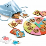 Djeco Tactil Bzzz is designed for children learning to recognize different textures and shapes through touch. The rules are simple: One player spins the wheel and another player tries to find the corresponding disc using only touch. The goal is to collect as many insect cards as possible.