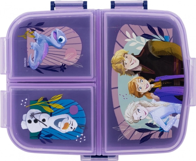 Original and practical lunch box with multiple compartments is ideal for children to take to school, the playground, or on trips. Made from durable material, it withstands everyday drops and bumps. The box has two tiers - the lower part features one large compartment and the upper part is divided into three separately sealable compartments.