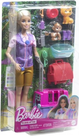 Discover the world of animal care with the Barbie Veterinarian doll and a rich set of accessories for creative play. The set includes two adorable patients – a monkey and a tiger cub, a carrier with opening doors, and a practical medical bag. A stethoscope, feeding bottle, a “syringe,” and equipment for care and nature exploration are also included. An ideal gift for young animal lovers and future vets.