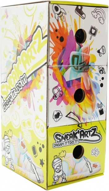 Discover your creativity with the Sneak’Artz set and design your own mini sneakers just the way you imagine. The package includes 2 sneakers to decorate, glitter, 6 decorating markers (can also be used as blow pens), 3D stickers, classic stickers, and charms. You can hang the finished sneakers on your backpack or keys and collect up to 24 different styles.