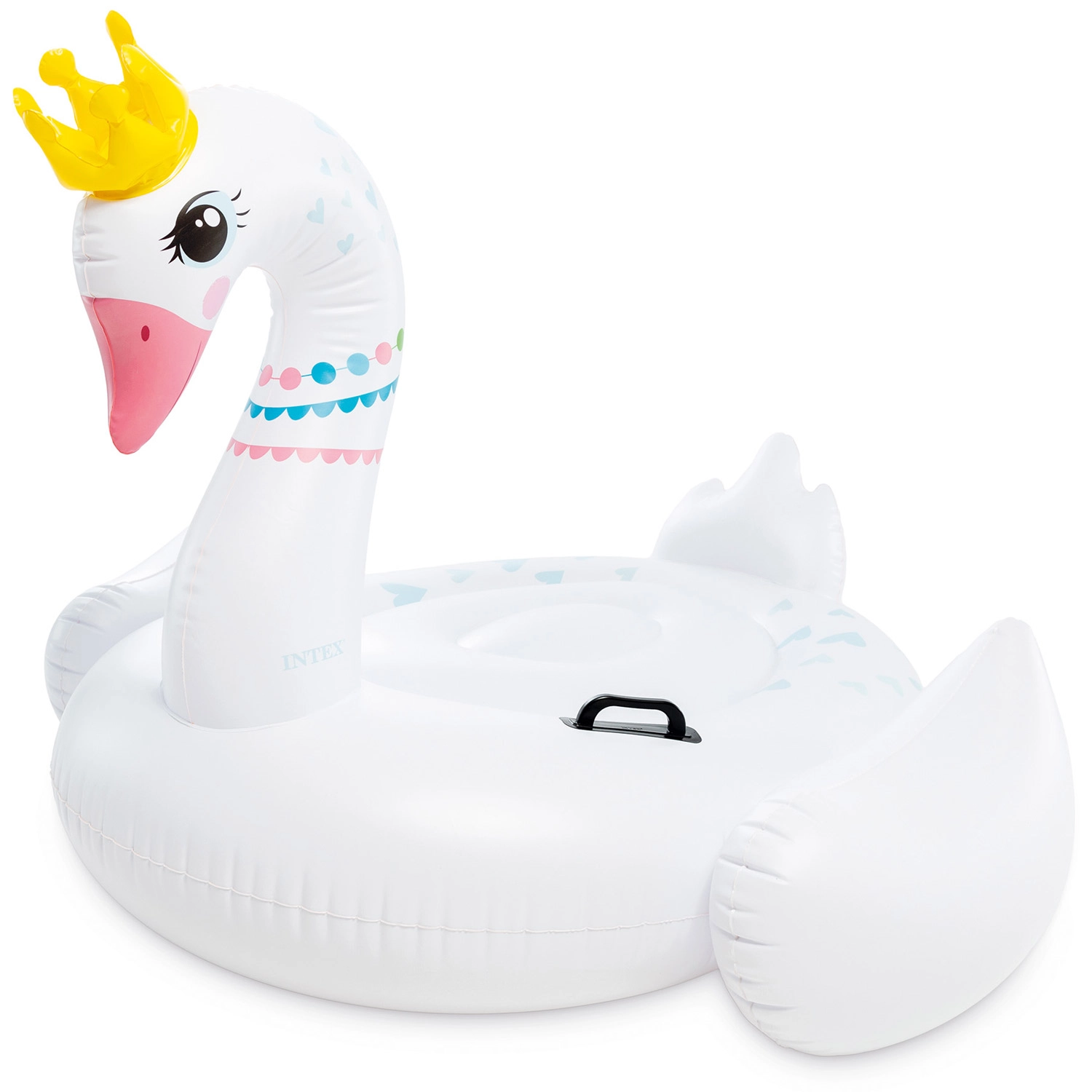 A playful swan with a crown and colorful details catches the eye at first glance and adds the right vibe to summer fun.