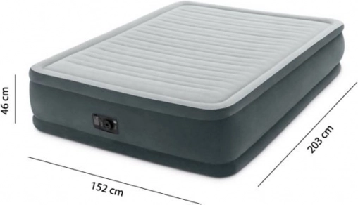 The Intex Inflatable Mattress (203x152x46 cm) is an ideal solution for comfortable sleeping for two people at home or on the go. Thanks to the built-in electric pump, the mattress offers the advantage of quick inflation in just 3 minutes and easy deflation in 1 minute.