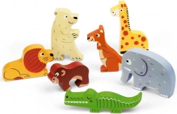 Discover a fun wooden ZOO-themed puzzle from JANOD that supports fine motor skills, learning shapes and colors, and offers safe play from 12 months. Seven colorful animals can be placed into the board or used as standalone figures for creative play.