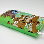 The cushion with the Little Mole and bunnies motif is not only beautiful but also practical. An ideal accessory for any child's room or for traveling, providing comfort and joy. Made from soft microvelour, it feels pleasant to the touch, and with its printed design, it attracts every eye. Filled with hollow fiber, ensuring softness and lightness.