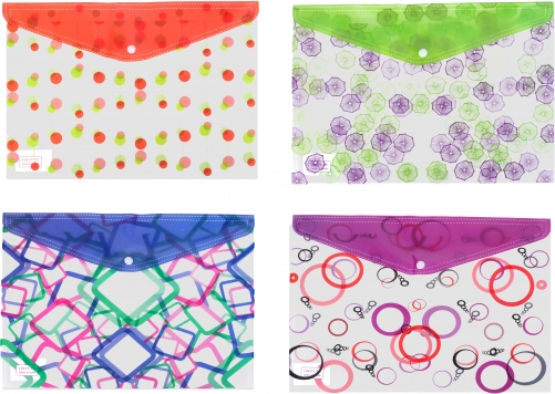 Practical folder with snap fastener measuring 35x25 cm is ideal for organizing and storing documents and papers. Available in four different designs.