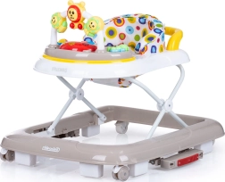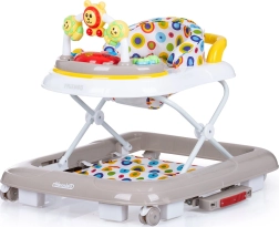 The front wheels allow 360-degree rotation for easy maneuvering. The colors and sounds of the activity tray, which can also be detached and used separately, encourage sensory development.