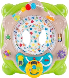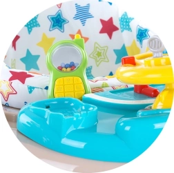 A colorful tray with toys and a music panel stimulates your child’s senses and nurtures creativity.
