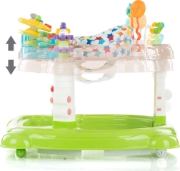 The Joya Lux 4-in-1 walker offers four functions in one: it can serve as a walker, rocker, jumper, and activity center. Its wide base ensures stability, and the 360° rotating seat lets your child reach all the toys. Three height positions of the seat can be adjusted to match your child’s height. The walker is also equipped with six stoppers for enhanced safety and protection against falling down stairs.
