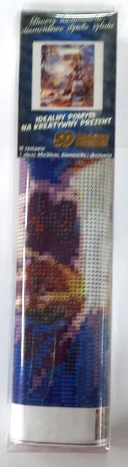 - Canvas with a pre-printed picture, application pen, tray, wax, set of colored stones