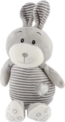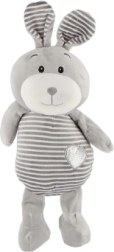 This gray striped bunny with cute details and a heart on its tummy gives children a sense of security and comfort. It’s made from a pleasant, soft fabric that invites hugs and is gentle even for the smallest babies.