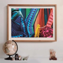 Vivid textiles and rich colors make building the puzzle a fun challenge and turn the finished picture into a stylish design piece.