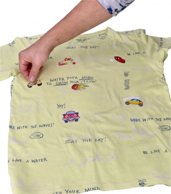 Airplane stickers on a small sheet, which withstand washing by hand or in a washing machine, if the temperature does not exceed 40°C and the laundry is turned inside out.