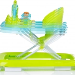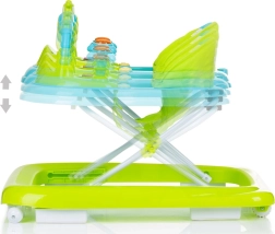 The walker is easy to fold and assemble, so you can store it effortlessly even in smaller spaces. 3 seat height positions let you adapt it to your child’s current height, while the 360° swiveling front wheels make moving around the room easier.
