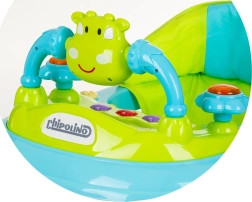 The CHIPOLINO Little Cow interactive walker is great for children up to 12 kg who can sit up independently. It offers a wide base for stability, 3 seat height positions, an interactive play tray with sounds and colors, and easy folding for convenient storage.
