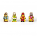 Colorful wooden characters add role-play elements to the game, supporting children's imaginative play.