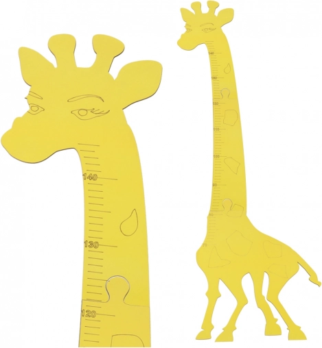 The yellow giraffe with bold height markers adds color to the room and motivates children to measure regularly.