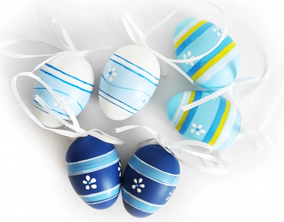 Enliven your interior with our stunning set of decorative plastic eggs. They are hand-painted, bringing a unique style and elegance to your home.