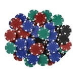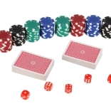 The set includes 100 chips, 2 decks of cards, and 5 dice – an ideal foundation for a home poker tournament with no extra purchases needed.