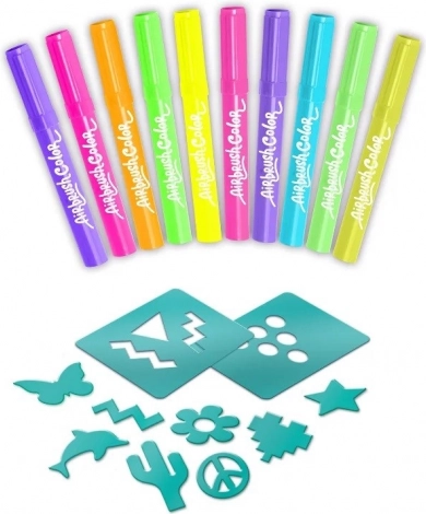 10 neon markers, 20 stencils