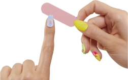 OMG Big Sis brings a unique nail studio. Treat yourself to the experience of a perfect manicure. The package includes more than 15 surprises, including press-on nails, a nail file, and nail polishes. Each doll has a different themed studio. You can decorate your nails to your taste with stickers and glitter. Box contents: • 1 OMG Big Sis, 3 fashion accessories, 1 pair of earrings, 1 pair of shoes • 2 nail polishes • 24 colorful press-on nails • 24 nail tabs • 3 sheets of nail stickers • 1 sachet of glitter, 1 glitter bottle • 1 nail file OMG doll height: approx. 25 cm.