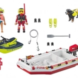 The Fireboat with Jet Ski by PLAYMOBIL offers action-packed adventures full of daring rescue missions. The set includes: