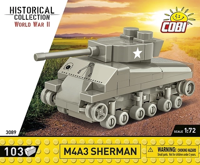 Discover the legendary American medium tank M4A3 Sherman in an elegant mini scale. At approximately 9 cm in length, the model faithfully captures the key features of the real vehicle, including U.S. markings, while delivering the excellent building fun and durability typical of the COBI brand.