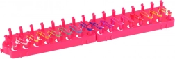 A modular loom with densely spaced pegs lets you create simple to intricate bracelet and accessory patterns.