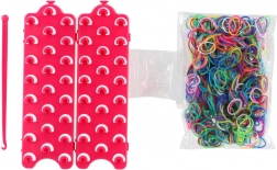- 600 silicone bands (mixed colors), three-row loom, hook, clasps, guide