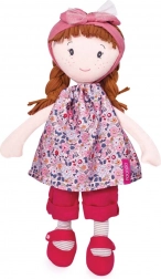 Capucine is a born optimist with a charming look and a gentle touch that children will love. She wears short dark pink trousers, a blouse with colorful flowers, dark pink ballet flats, and a pink headband with a big bow and white tulle. Her clothes are easy to remove and dress again – perfect for developing fine motor skills and imagination.