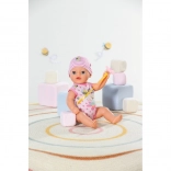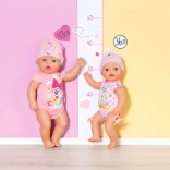The adorable BABY born Lena 36 cm doll is an ideal first baby doll for little ones from 1 year. It offers 7 realistic functions without batteries – drinks from a bottle, pees in the diaper, uses a potty, can bathe, and thanks to the magic pacifier opens and closes her eyes. The lightweight body and movable limbs make dressing and pretend care easy.