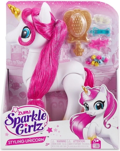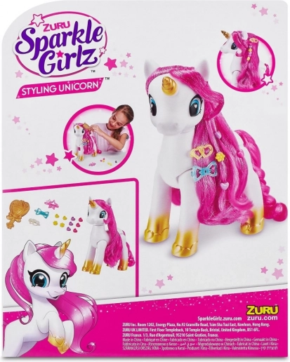 The ZURU Sparkle Girlz styling unicorn brings children a world of fantasy and sparkle. Thanks to the long, fabric mane, kids can brush, decorate, and create new hairstyles, while the glittery horn and hooves add a magical touch to every playtime.