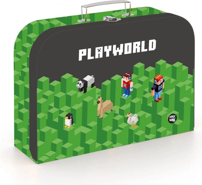 Children's Suitcase Playworld is made from laminated cardboard material, covered with printed paper for an attractive appearance. Thanks to the metal clasp, the suitcase closes securely and protects the interior contents.